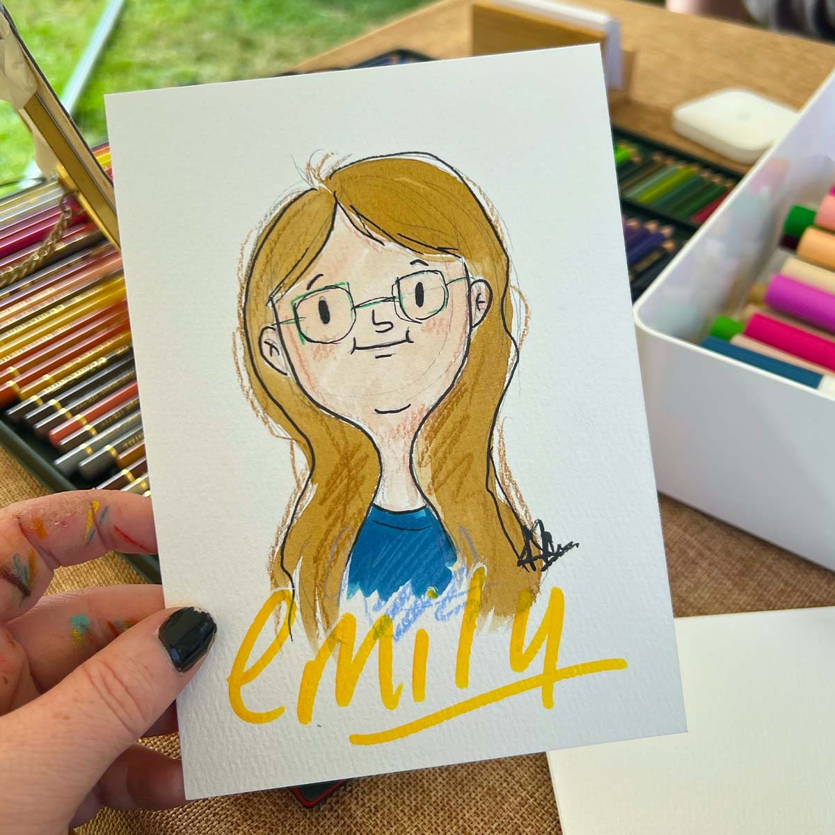 I create live watercolour illustrations at festivals and events. Guests can watch their illustration come to life and take home a one-of-a-kind keepsake.