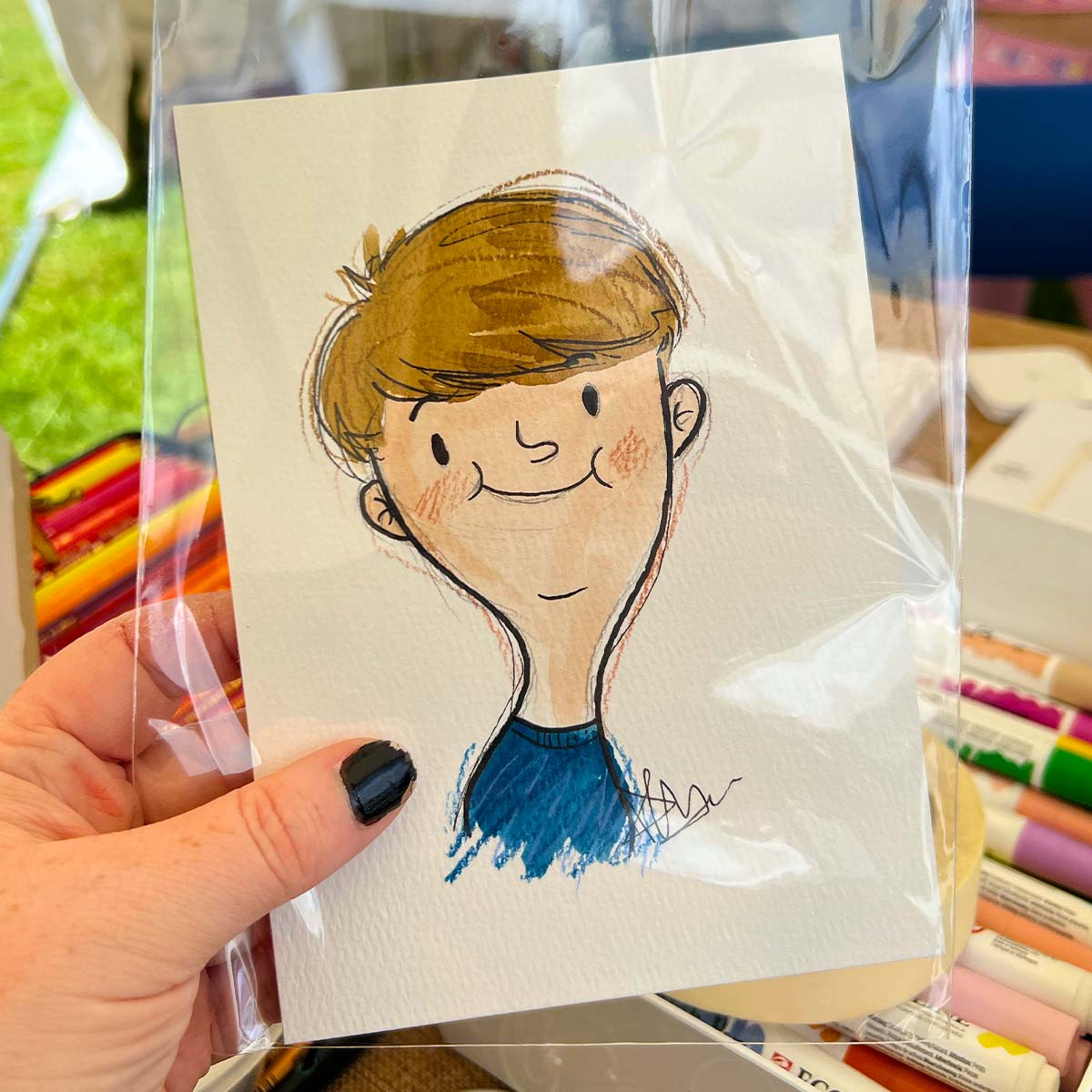 In 2025, I illustrated live at Liverpool Pride and Dovedale Festival, capturing colour, joy and personality in loose, expressive portraits.